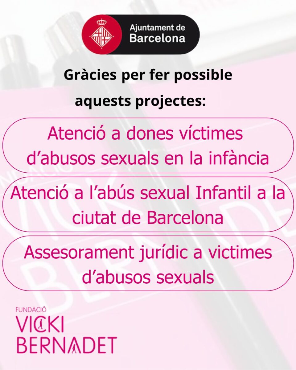 Ens complau anunciar que l’Ajuntament de Barcelona ens ha concedit ajudes per a la realització de tres projectes essencials que hem presentat. Aquest suport ens permetrà continuar amb la nostra missió de proporcionar assistència i protecció a les víctimes d’abusos sexuals i infants en situació de vulnerabilitat. Els projectes que es faran realitat gràcies a aquesta ajuda són: