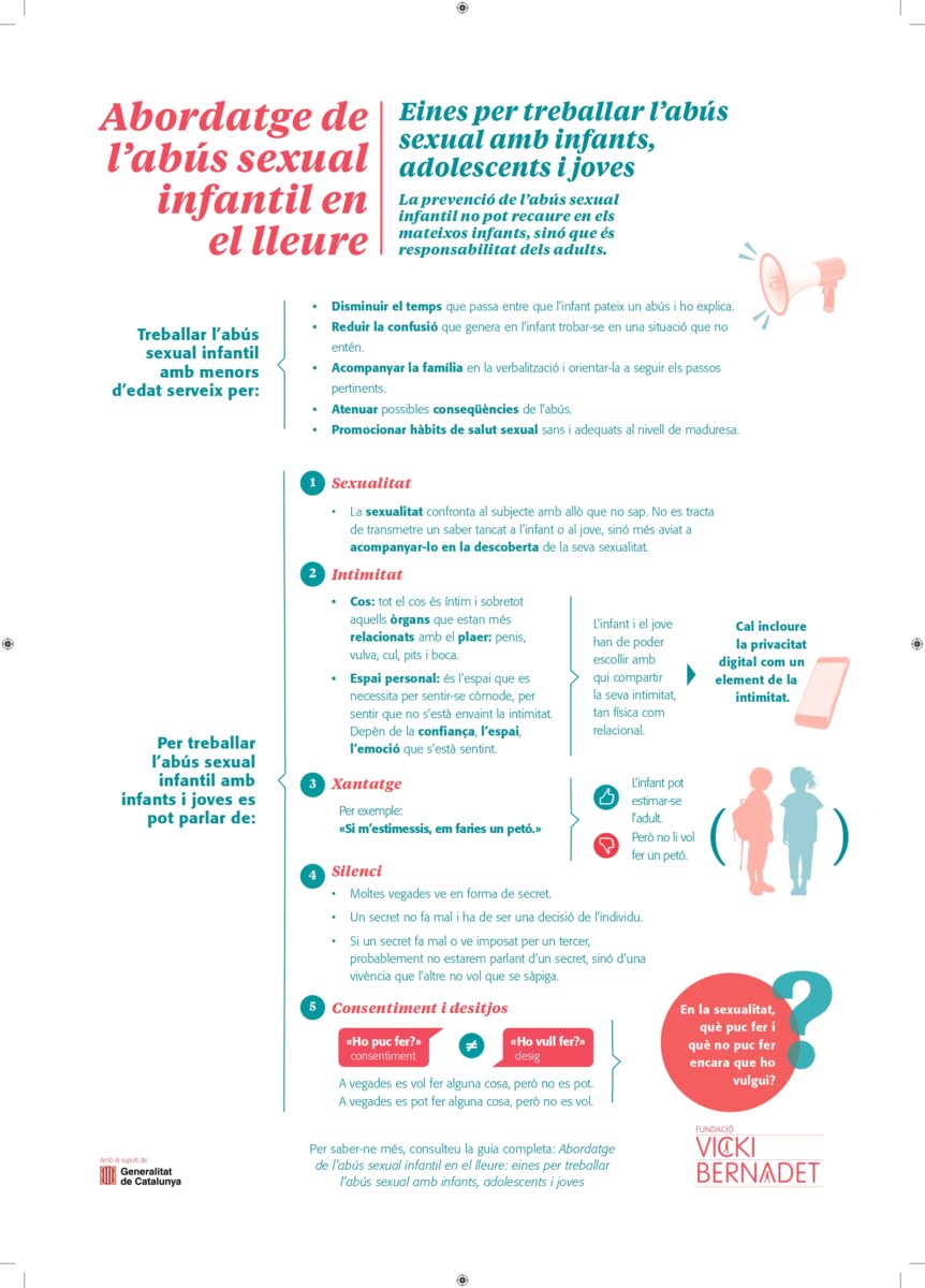 - Guia didàctica de la Fundació Vicki Bernadet “Prevenció i abordatge de l’abús sexual infantil en el món del lleure: Orientacions i recursos pedagògics”